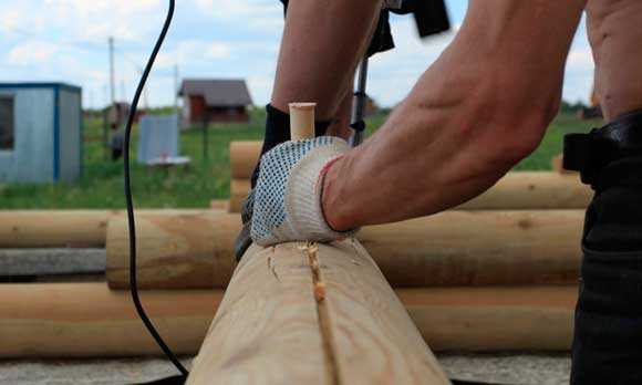 Используется мощная дрель, если необходимо делать отверстия непосредственно на строительной площадке либо станок, если брус подготавливается заранее.