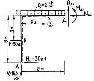 При построении эпюры Q раму необходимо разбить на участки. Число участков, которое нужно рассмотреть для построения эпюры поперечной силы, устанавливается так же, как и при построении эпюры изгибающего момента»
