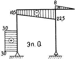 III участок: М убывает от 90 кнм до –9 кнм. Q – отрицательная.