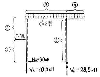4. Как вычисляется изгибающий момент в сечении рамы?