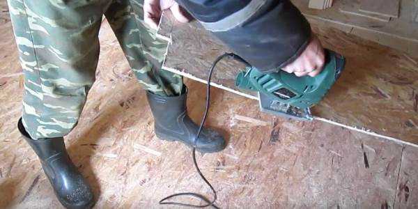- Для раскроя плит OSB под рукой необходимо иметь ножовку по дереву, электрический лобзик или (и) ручную циркулярную пилу. Рез, сделанный обычной ножовкой, будет не очень аккуратным, да и времени и сил уходит несравнимо больше. Поэтому оптимальный вариант — это электролобзик. С этим инструментом может справиться даже начинающий мастер. С циркулярной пилой работать несколько сложнее, но зато быстрее, а рез получается наиболее ровным.