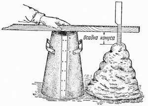 - потом конус помещают на ровную плоскость, которая не пропускает влагу, желательно на лист из стали.
