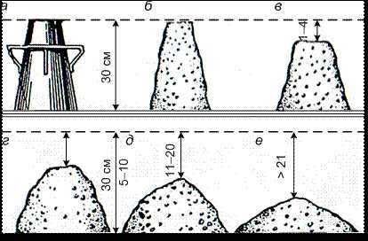 Определение подвижности бетонной смеси конусом, что такое осадка конуса