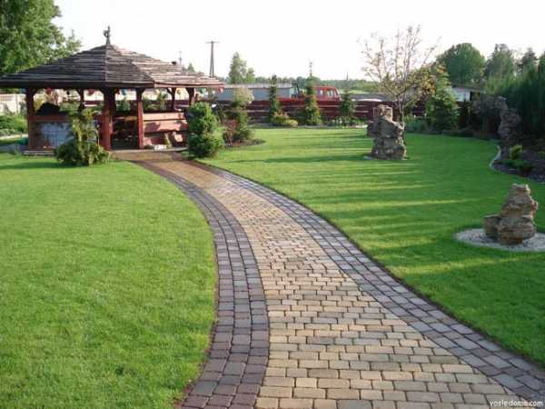 Дорожки из тротуарной плитки смотрятся красиво и роскошно, в то же время такая облицовка практичная и долговечная. Больше всего они украсят дачный участок или территорию возле частного дома.