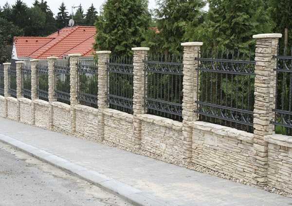 - неограниченный простор для создания дизайна. Ограда из бетона может иметь абсолютно любой размер, цвет и рельеф. На современном строительном рынке предлагают заборы из железобетона с элементами удивительной металлической ковки или вкраплениями из натурального камня. Такие ограждения прекрасно подходят даже для самых изысканных архитектурных ансамблей и ландшафтов;