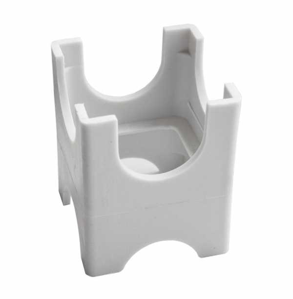 - «Опоры» – круглые, квадратные или прямоугольные горизонтальные фиксаторы, позволяющие получить слой от 25 до 80 мм, под арматуру от 4 до 32 мм. Для сыпучих оснований – специальные, усиленные опоры с круглой платформой большего диаметра. Также выпускают отдельные подставки (подложки) под фиксаторы, устанавливаемые на сыпучих основаниях.
