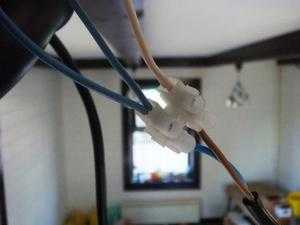- Чтобы избежать замыкания, разведите три жилы, которые торчат из потолка, на расстояние друг от друга в стороны.
