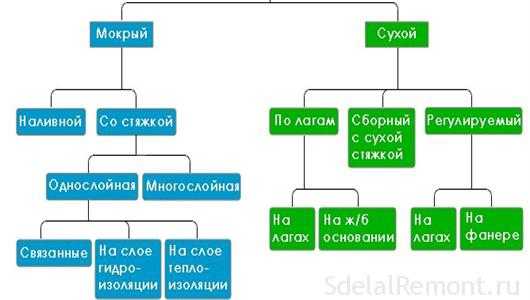 - сухие;полусухие;цементные;подготовленные для полов с деревянным покрытием.