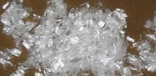 - Фибра небольшого размера – 6 мм – применяется для повышения прочности и улучшения геометрической формы при работе с такими смесями, как цемент, песок, гипс, в штукатурных и затирочных смесях, а также при работе с пено-бетоном.