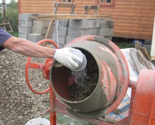 - Для того чтобы соединить фибру с цементом, гипсом и другими смесями необходимы, помимо самих материалов, бетономешалка или растворосмеситель и вода. Есть несколько способов замешивания раствора. Как правило, используется чаще всего следующая технология.