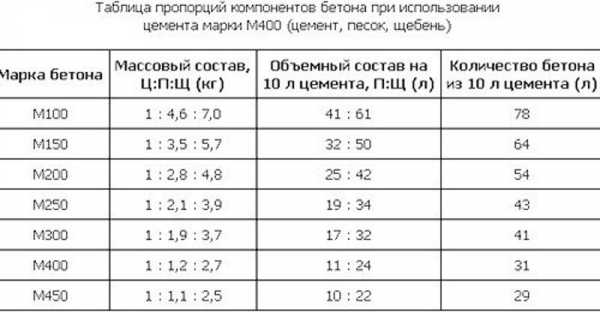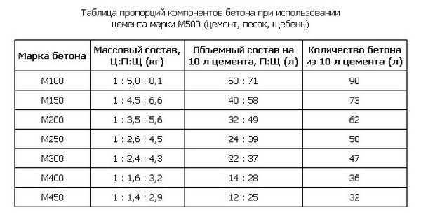 Соотношение цемента, песка и щебня
