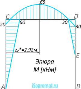 Экстремум момента положителен, следовательно, его следует откладывать по другую сторону базовой линии.