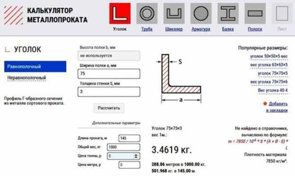 Программа имеет также и функцию обратного пересчета. Если указать массу и типоразмер профиля – сервис высчитает его длину. Ресурс абсолютно бесплатен и удобен в использовании.