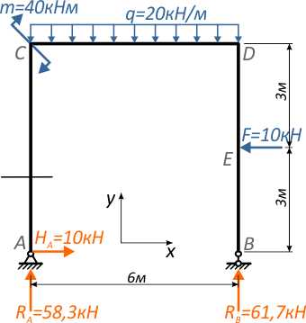 Для заданной расчетной схемы рамы ранее мы уже определили опорные реакции.