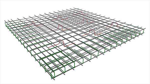 К примеру, армирование бетона фундамента состоит из сборки отдельных сеток, скрепляемых затем вместе в единую конструкцию.