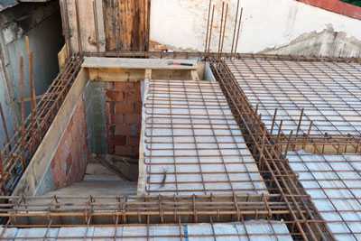 Второй вариант – работы направленные на укрепление отмостки, пола, потолка. То есть конструкций бетонных, но не слишком важных в плане передачи нагрузок. Здесь сетку просто кладут внутрь опалубки, без закрепления. Максимум – подвяжут проволокой.