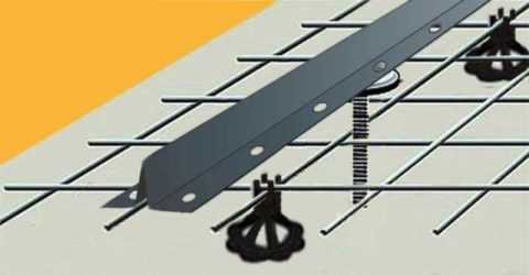 3. Готовая конструкция укладывается на фиксаторах («стульчиках») на уровне около 3,5 см от основания. При заливке стальные элементы должны быть в середине бетонного слоя – при этом нагрузки равномерно распределяются по поверхности покрытия, обеспечивается его механическая стойкость, отсутствует коррозия металла.