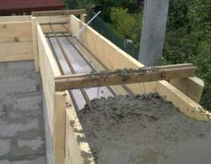 Максимальной прочности конструкции добиваются единовременной непрерывной заливкой из бетона марки, не меньшей чем М200. Объем подобных работ, как правило, значительный, поэтому лучше заливать готовый бетон, используя бетононасос, непосредственно в опалубку.