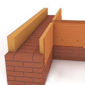 Если стена кирпичная, то внешняя опалубка выстраивается в полкирпича, внутренняя же из досок.