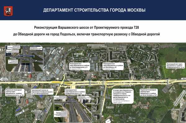 По плану реконструкция Варшавского шоссе за МКАД охватывает участок дороги от проектируемого проезда 728 до Обводной дороги на город Подольск.