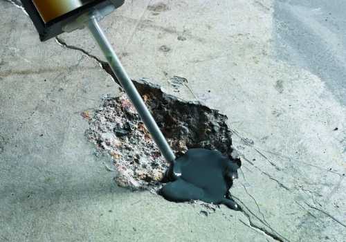 Если была нарушена технология обустройства бетонных полов, и при большой механической нагрузке с течением времени в стяжке появляются выбоины, которые нужно немедленно устранять, чтобы избежать дальнейшего разрушения покрытия: