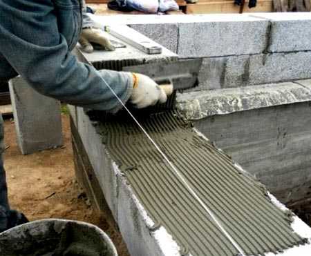 В качестве раствора применяется специальный клей. Он обладает лучшими характеристиками адгезии по сравнению с обычной песчано-цементной смесью.