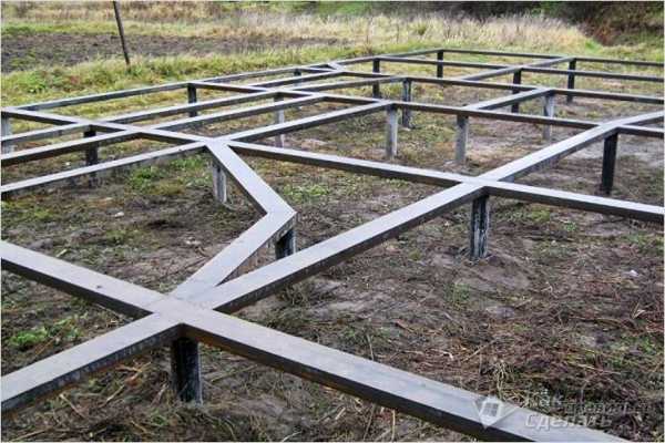 Устройство фундамента. Поскольку общая масса сооружение небольшая, то можно выбрать свайный, ленточный или столбчатый фундамент.