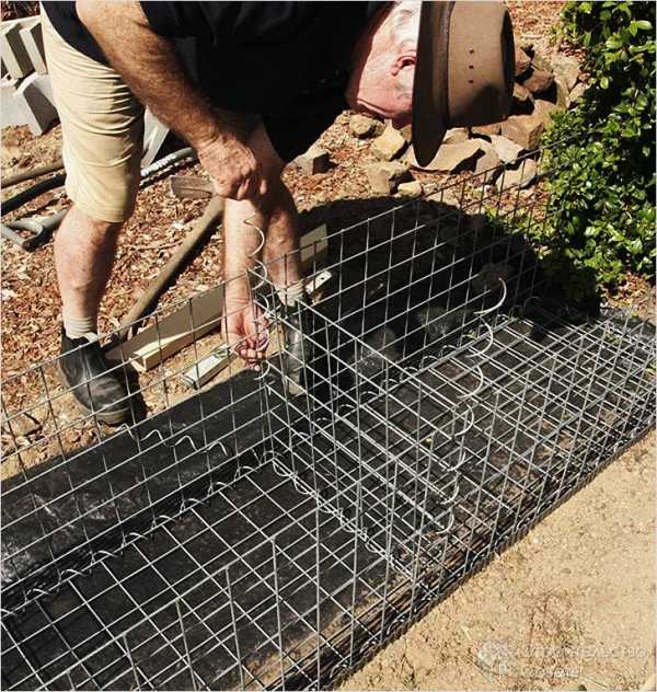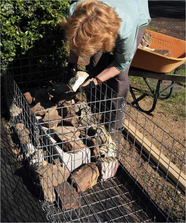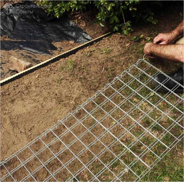 ΠΠ»Ρ ΡΠΎΠ·Π΄Π°Π½ΠΈΡ ΡΠ°Π΄ΠΎΠ²ΠΎΠΉ Π³Π°Π±ΠΈΠΎΠ½Π½ΠΎΠΉ ΠΎΠ³ΡΠ°Π΄Ρ Π½ΡΠΆΠ½ΠΎ Π±ΠΎΠ»ΡΡΠ΅ ΠΌΠ΅ΡΡΠ°, ΠΏΠΎ ΡΡΠ°Π²Π½Π΅Π½ΠΈΡ Ρ ΠΎΠ±ΡΡΠ½ΡΠΌ Π·Π°Π±ΠΎΡΠΎΠΌ. Π‘Π°ΠΌΠΎΠ½Π΅ΡΡΡΠ°Ρ ΠΊΠ°ΠΌΠ΅Π½Π½Π°Ρ ΡΠΈΡΡΠ΅ΠΌΠ° Π² ΠΏΡΠΎΠ²ΠΎΠ»ΠΎΡΠ½ΠΎΠΉ ΡΠ΅ΡΠΊΠ΅ Π½Π΅ ΡΡΠ΅Π±ΡΠ΅Ρ ΡΠΏΠ»ΠΎΡΠ½ΠΎΠ³ΠΎ ΡΠΎΠΊΠΎΠ»ΡΠ½ΠΎΠ³ΠΎ ΡΡΠ½Π΄Π°ΠΌΠ΅Π½ΡΠ° β Π΅Π΅ ΡΡΡΠ°Π½Π°Π²Π»ΠΈΠ²Π°ΡΡ ΠΏΡΡΠΌΠΎ Π½Π° ΠΏΠΎΡΠ²Π΅. Π§ΡΠΎΠ±Ρ Π΅Π΅ Π²Π΅ΡΡΠΈΠΊΠ°Π»ΡΠ½ΠΎ Π·Π°ΡΠΈΠΊΡΠΈΡΠΎΠ²Π°ΡΡ, ΡΠ΅ΡΠ΅Π· Π½Π΅Π±ΠΎΠ»ΡΡΠΈΠ΅ ΠΏΡΠΎΠΌΠ΅ΠΆΡΡΠΊΠΈ Π½ΡΠΆΠ½ΠΎ ΠΏΠΎΡΡΠ°Π²ΠΈΡΡ ΡΡΠΎΠ»Π±Ρ ΠΈΠ· ΡΡΠ°Π»ΠΈ.