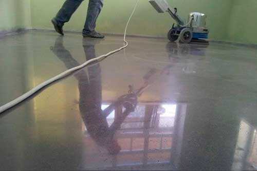 Во время заливки бетона происходит расслоение раствора, при этом крупные фракции заполнителя оседают, а на поверхности образуется цементное молочко. Во время эксплуатации этот слабый верхний слой не только пылит, но и довольно быстро разрушается под воздействием внешних факторов. Для увеличения прочности поверхности, а также в целях ее выравнивания, выполняется шлифовка бетонного пола. В результате поверхность приобретает необходимую шероховатость и легко поддается дальнейшей обработке. Отшлифованные бетонные полы пропитывают водоотталкивающими смесями, полируют или окрашивают в зависимости от назначения объектов, в которых они устроены.