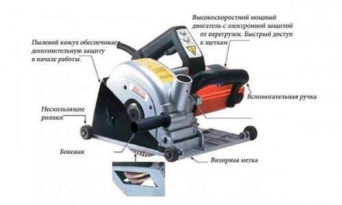 Штроборез можно сравнить с болгаркой, только сильно модернизированной. Такой инструмент имеет два диска с алмазным напылением, расстояние между которыми может регулироваться. Режущие круги закрыты специальным кожухом, предотвращающим непосредственный контакт со стеной.