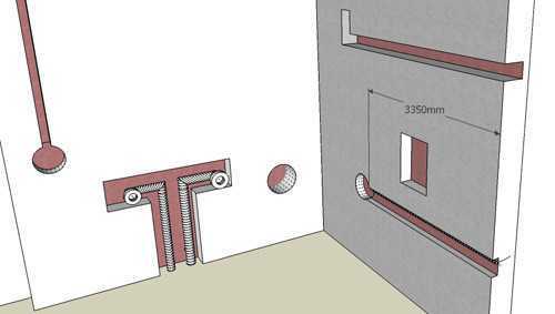 Вертикальное штробление выполняют с отступом от двери и других проёмов стен на расстоянии 100 мм, а от газопровода не ближе 400 м.