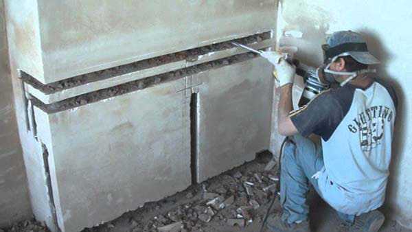 - для удаления центральной части канавки используют перфоратор или зубило с молотком.
