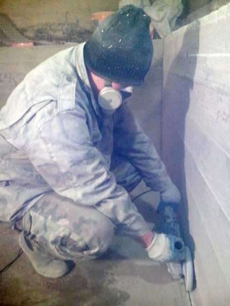 Любительское фото, процесса изготовления штробы с использованием обычного перфоратора