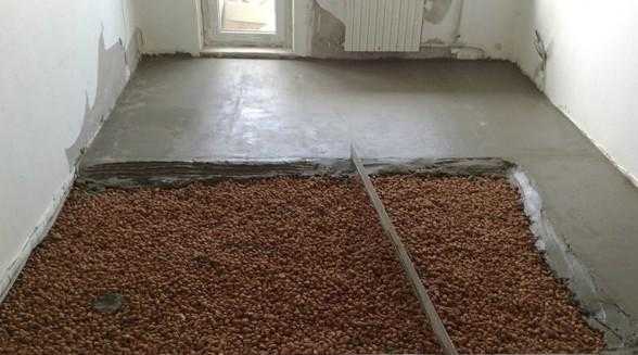 Применение керамзита актуально в тех случаях, когда ставят цель приподнять пол на большую высоту. Особенностью этого материала является то, что он способен сквозь себя перемещать пары и воздух.
