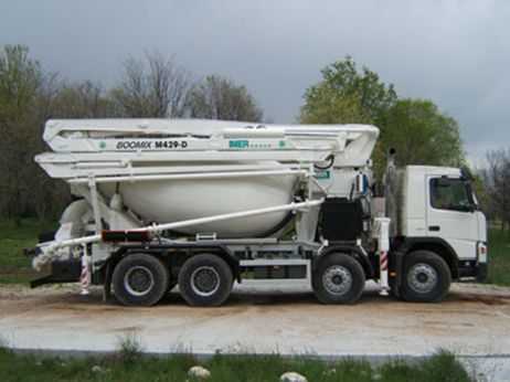 Миксер оборудованный насосом и стрелой для заливки раствора.