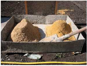 Рекомендуется использовать крупный речной песок. Стоит следить за тем, чтобы он был чистым, т.к. наличие посторонних примесей значительно ухудшает качество готового материала.