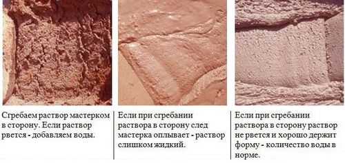 Для кладки используют состав в пропорциях часть цемента и 5 частей песка – зависит от состояния песка (как просушен, просеян). Раствор делают в малом объёме, определяя опытным путём требуемую пропорцию смеси, расход раствора, что оптимизирует расход материала. Для штукатурки берут вяжущие марки 200, 300 в пропорции 1/3.
