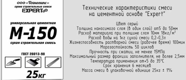 Приобретая состав марки М150, узнают о добавках в нём. Например, соответствует ли смесь по показателям морозостойкости. Состав имеет массу областей использования: