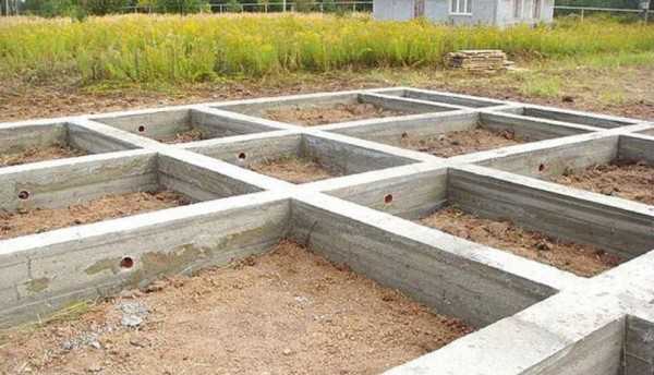 Возводят ленточный незаглубленный фундамент на пучинистых грунтах или на слабо просадочных грунтах. Делается ленточный фундамент незаглубленный на поверхности грунта в виде ячеек под домом. Такой вид фундамента имеет высокую жёсткость на изгиб.