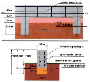 Если высота столбов не имеет особого значения для прочности здания, то верхняя площадка фундамента — ширина ростверка — не может иметь размеры меньшие, чем толщина предполагаемой стены. Поперечное сечение опоры может быть как квадратной, так и круглой формы.