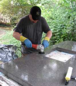 Шлифовка бетонной столешницыК самостоятельному производству столешницы из бетона подходят с позиции правильного проведения всех этапов, с учетом технологических особенностей каждого процесса.