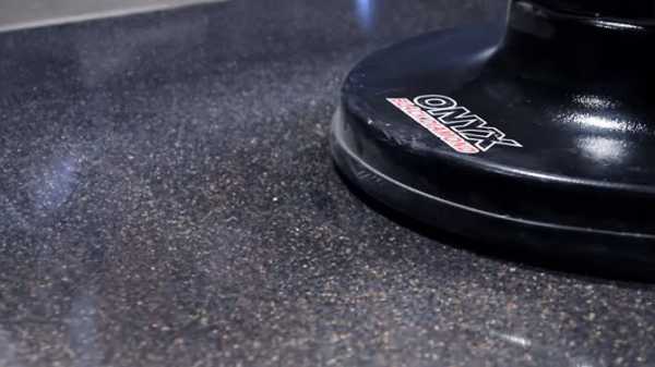 После просыхания на шлифованную машинку надевается насадка из замши для полировки. Чтобы добиться зеркального отражения столешницы, включите машинку на минимальные обороты и тщательно полируйте.