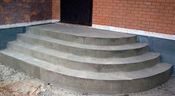 Бетонные полукруглые ступени крыльца своими руками заливаются в опалубке из согнутой жести или пластика.