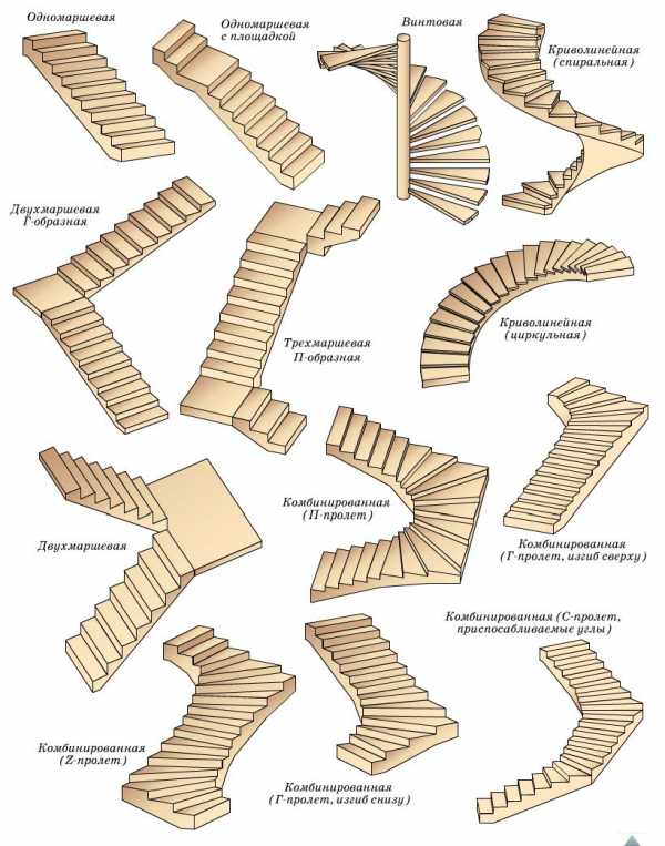 Кроме того, можно выделить такие виды ступенек для лестницы, как: