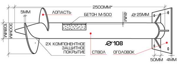 Схема свайно-винтового фундамента.