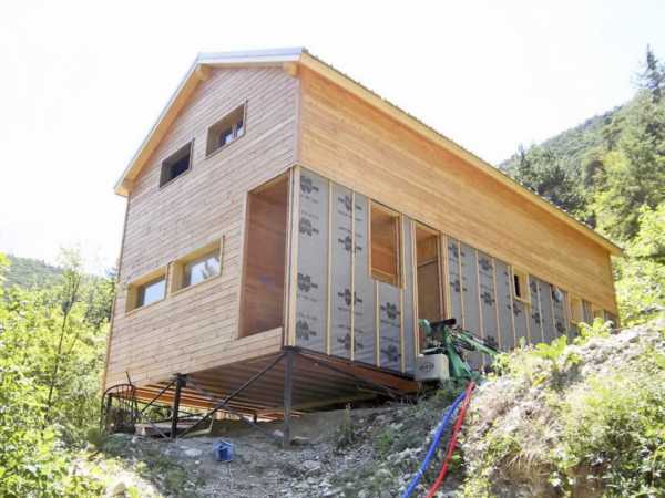 Дом на участке, имеющим большой угол уклона.