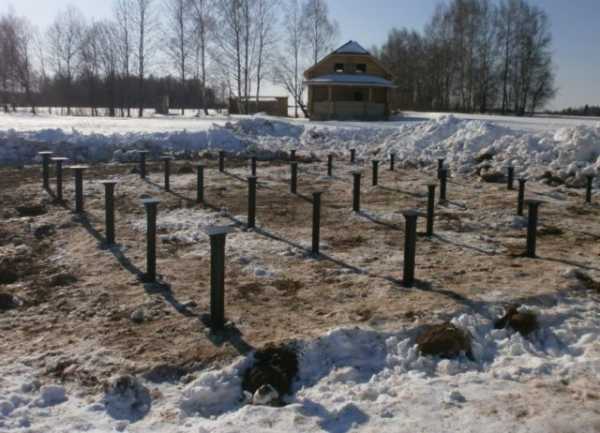 Для точного расчета следует определить оптимальное расстояние между опорами с учетом нагрузки (не более 3 м). После этого размечают фундамент дома (свайное поле).