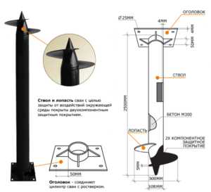 - Защита от коррозии металла – особенно это касается нижней части сваи, находящейся в земле;