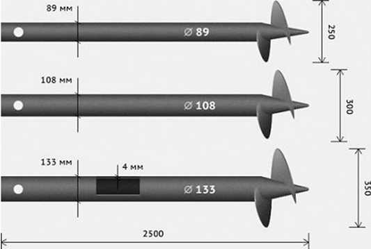 - Диаметр ствола может составлять от 57 до 159 мм, диаметр лопасти находится в диапазоне 180-550 мм, несущая способность – от 1 до 15 т/шт.