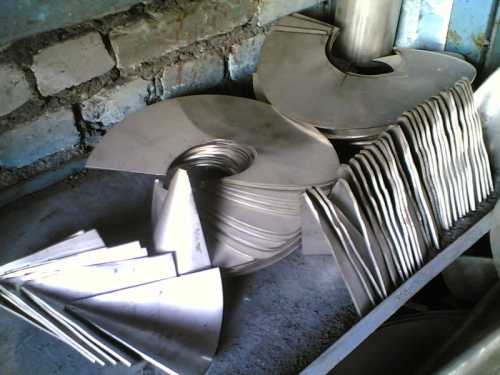 - Лопасти можно изготовить самостоятельно вырезав их из металлического листа. Согнуть их необходимо под определенным углом так, чтобы расстояние между витками в готовом изделии было около 5 см. Данный процесс можно значительно облегчить, если лопасти взять с любого бура.